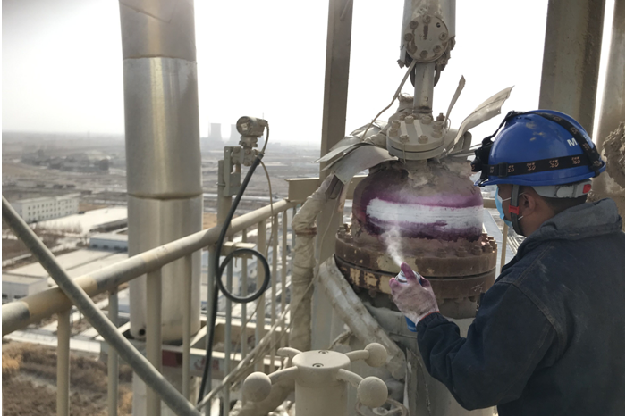 图为无损检测渗透检测现场