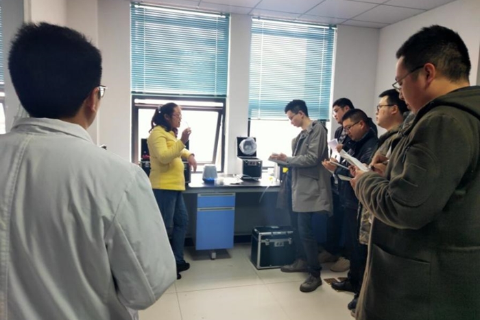 图为设备厂家工程师对培训人员讲解仪器操作流程
