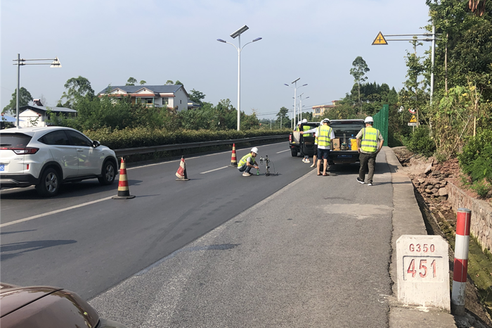 在国道G350线预防性能养护工程交工检测项目,检测队伍面临项目较多、工作量大、作业面宽、路段较长、气温较高等问题,交检分公司做好了安全技术交底工作,同时充分做好了现场防暑工作,派出了安全员现场监督,保障检测项目井然有序开展。