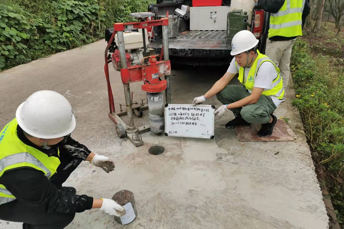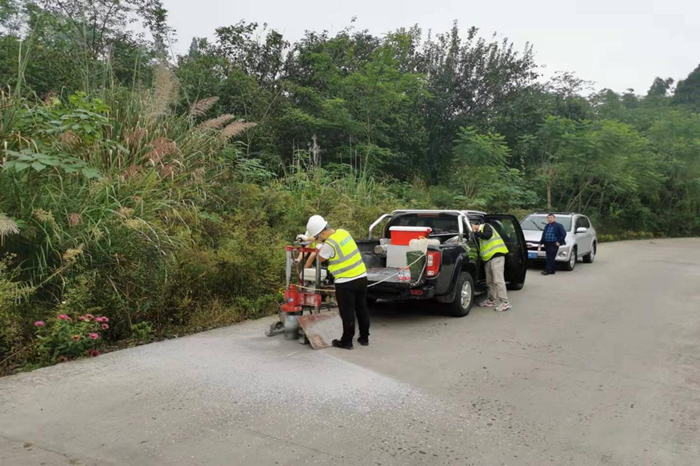 志愿帮扶检测工作小组主要对井研县、犍为县蒲亭幸福美丽新村道路新建工程、美丽乡村路工程、村道窄路基路面改造工程及村道生命安全防护等工程进行了现场质量检测及取样工作。