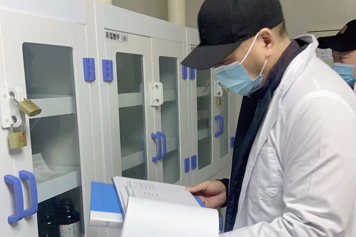 检查组分别对内部管理制度上墙、专用库房、双人双锁管理落实情况、使用台账明细、易制毒化学品种类及库存数量等进行了检查。检查组充分肯定了质检公司2021年度易制毒化学品的管理工作,并再次强调了做好易制毒化学品规范管理对于个人安全、公司利益、社会影响的重要意义。