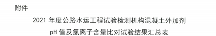 四川省交通工程质量监督站公布了2021年度公路水运工程试验检测机构混凝土外加剂PH值及氯离子含量比对试验结果,我公司比对实验结果为“满意”。