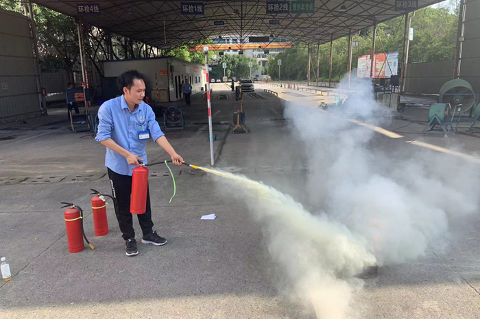 此次演练为高温自燃起火,全体职工严格按照“一提二拔三压四喷”的步骤规范使用灭火器扑灭火点,现场人员踊跃参与,熟练掌握了灭火器使用方法,演练过程有条不紊,达到了演练目的。通过演练,为今年“安全生产月”画上了圆满的句号,也为车检分公司的检验检测工作提供了安全保障,下一步车检分公司将继续在工作中践行“安全第一、预防为主”的安全工作方针,杜绝安全事故的发生。
