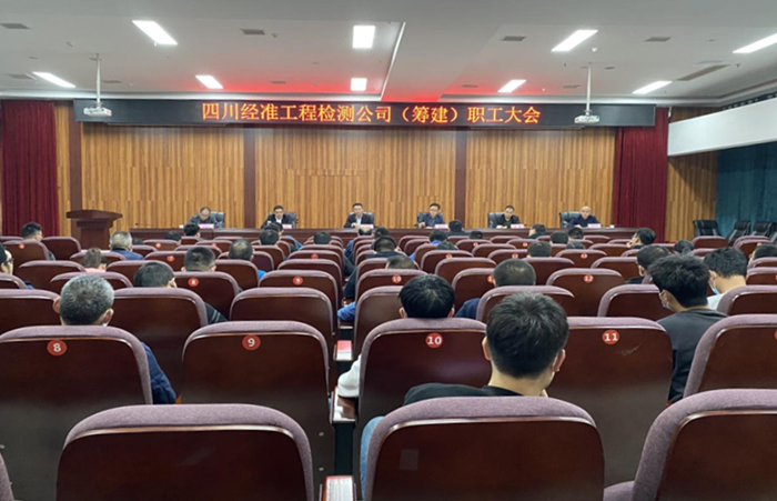 近日,四川经准工程检测公司(筹建)召开职工大会,推进公司改革重组工作。集团党委副书记、总经理周长奎,集团党委委员、工会主席蒋先杰出席会议。
