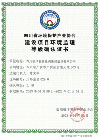 近日,为促进公司业务发展,更好地开拓环境监测市场,质检公司积极提升自身能力,向四川省环境保护产业协会申报,成功取得自动监控系统(气)三级证书。同时顺利将自动监控系统(水)资质由三级提升到二级、环境监理乙级资质证书到期换证工作。环境监测相关证书的取得及升级,是经准质检公司技术能力进一步提升的体现,公司将不断开拓环境监测市场,为社会提供优质检测服务。