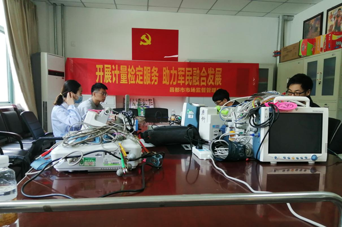 图为检测人员在九五五医院检测监护仪