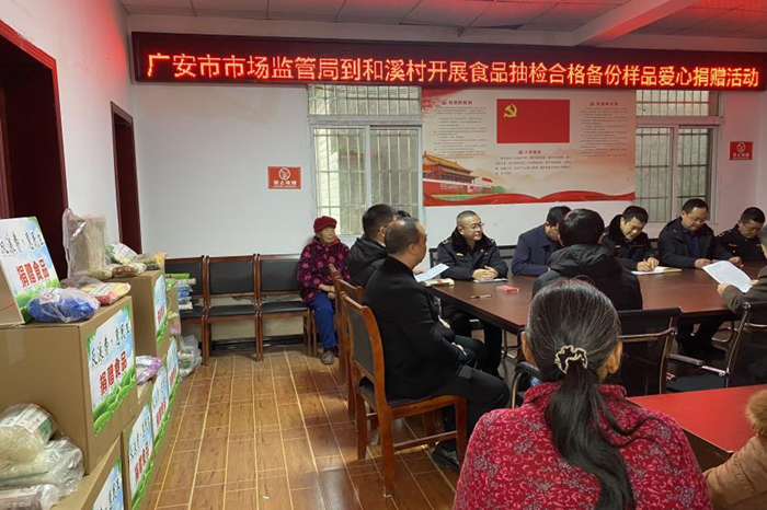 近日,经准质检分公司联合广安市市场监督管理局、岳池县市场管理监督局在岳池县新场镇和溪村举行合格备样食品捐赠活动。
