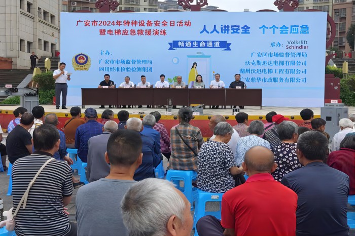 6月29日是首个“全国特种设备安全日”。当天,由广安市市场监督管理局和四川经准检验检测集团股份有限公司共同主办的“2024年广安市特种设备安全日活动暨电梯应急救援演练”顺利举行。