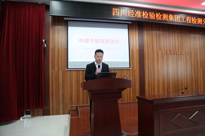 为优化中层管理人才资源配置,进一步激发干部队伍干事创业活力,2月14日,四川经准检验检测集团工程检测分公司组织开展中层管理人员竞聘上岗活动。本次竞聘活动按照报名资格审查、竞聘演讲、民主测评等程序依次进行,经准检验检测集团监事会、纪委全程监督。