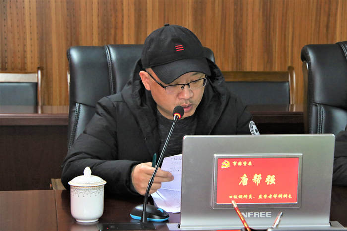 市国资委四级调研员、监管考评科科长唐帮强到会指导,并对公司民主生活会召开情况做了点评讲话,充分肯定了民主生活会成果,并对今后工作提出了五点建议:一要持续抓好学习教育,加强党的政治建设;二要抓紧制定整改清单,抓好问题整改落实;三要坚持全面从严治党,严肃党的政治生活;四要始终坚持挺纪在前,筑牢拒腐防变底线;五要牢记使命担当,凝聚发展正能量。