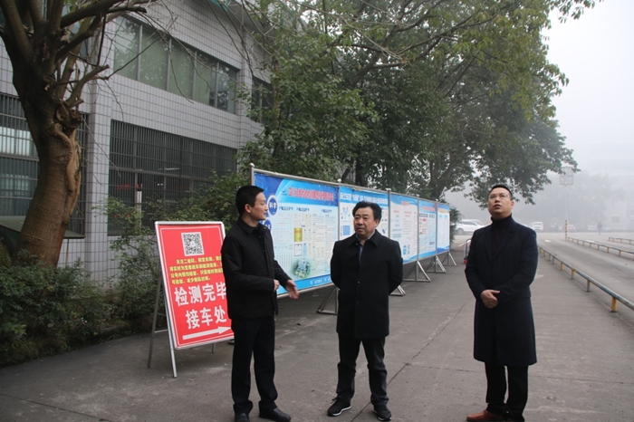 图为在车检分公司调研