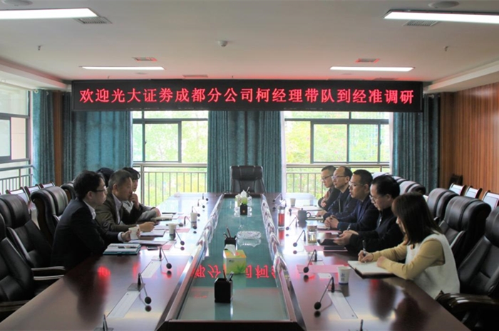 图为光大证券成都分公司莅临经准检测集团座谈会交流现场