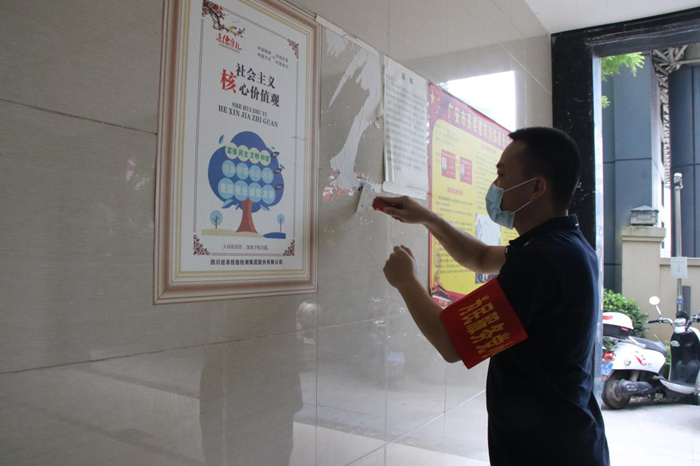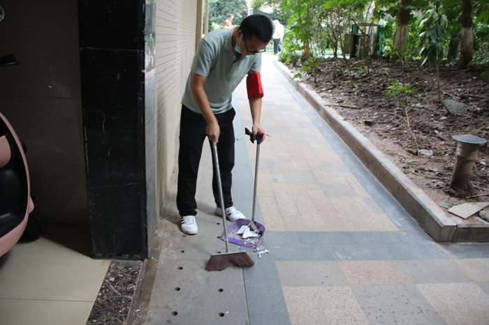 为民服务党小组成员、青年志愿者们分别到国际商业中心各楼栋开展卫生大扫除、除牛皮藓、环保宣传等服务,让小区内无暴露垃圾、无乱堆乱放、墙上无小广告,确保环境整洁,秩序井然。