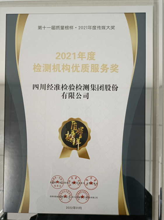 四川经准检验检测集团股份有限公司坚持以能力建设为核心,以质量安全为底线,以社会效益为导向,以服务地方为使命,以服务客户为己任,增资质、抓项目、练技术,完善质量管理体系、严格质量管控,切实提升检验检测能力和质量管理水平,确保数据精准、结果公正,树立讲质量、讲信誉、讲担当的品牌形象,成功获得第十一届质量榜样·2021年度传媒大奖—“2021年度检测机构优质服务奖”,行业影响力不断扩大。