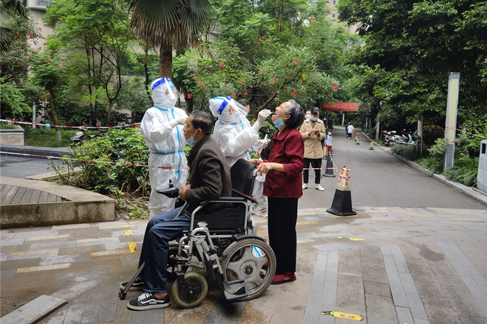 邻水县鼎屏镇乌龟碑社区是这次邻水疫情的“重灾区”,整个社区由管控区升为封控区。乌龟碑社区干部全部隔离、网格员超半数被隔离,辖区20个网格点、3118户、7788人,其中老弱病残等特殊人群30余人,入户检测不仅工作量大,难度也相当大。
