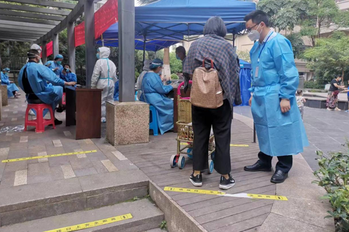 邻水县鼎屏镇乌龟碑社区是这次邻水疫情的“重灾区”,整个社区由管控区升为封控区。乌龟碑社区干部全部隔离、网格员超半数被隔离,辖区20个网格点、3118户、7788人,其中老弱病残等特殊人群30余人,入户检测不仅工作量大,难度也相当大。