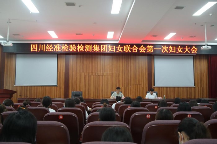 近日,四川经准检测集团召开全体妇女大会,集团工会主席蒋先杰出席会议并讲话,全体妇女同志参会,选举第一届妇联执委、常委、主席和第二届工会女职工委员会委员、主任。