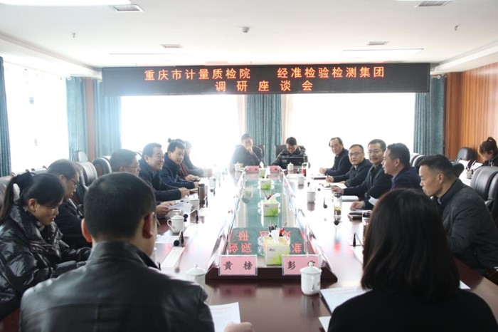 2月24日上午,重庆市计量质检院院长戚宁武一行到经准集团,就推动“渝广”合作项目落实落地和集团改革发展等方面进行调研座谈。座谈会由经准集团党委副书记、总经理周长奎主持,市政府副秘书长徐诚、市市场监督管理局相关科室负责人和重庆市计量质检院、经准集团相关领导以及相关部门负责人参加会议。