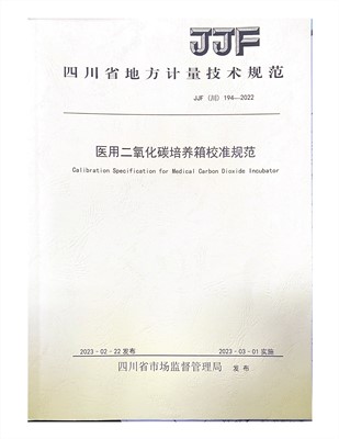 2023年2月16日由四川经准检验检测集团股份有限公司主持起草的四川省地方计量技术规范JJF(川)194—2022《医用二氧化碳培养箱校准规范》经四川省市场监管局审批,将于2023年3月1日实施。