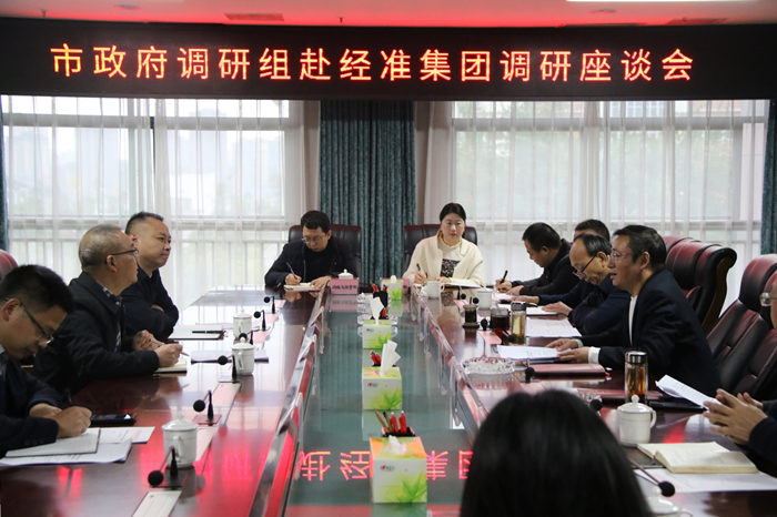11月30日上午,市政府副秘书长罗银华带队赴经准集团调研,并主持召开座谈会。市国资委党委委员、副主任曾山,市国资委发展改革科科长唐宗超,经准集团主要负责人、财务总监及部分子(分)公司负责人、部门负责人参加座谈。