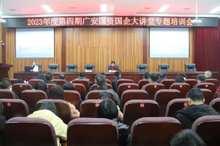 2024年1月19日上午,由市国资委主办、四川经准检验检测集团承办的广安市2023年第四期国资国企大讲堂正式开讲。市国资委党委委员、专职副书记杜海燕出席活动并讲话,市国资委干部职工、各市属国企领导班子成员、各区市县国资财政系统负责人;以及经准集团总部部门主要负责人、下属二级子企业负责人参加会议。