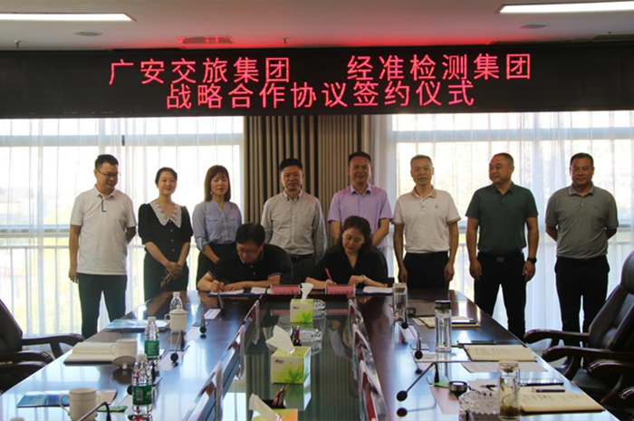5月30日,广安交旅集团与经准检测集团在广安签署了战略合作协议。广安交旅集团董事长张宗玖、副总经理张龙伟,经准检测集团董事长周长奎、总经理熊凤梅等领导及相关部门出席签约仪式。