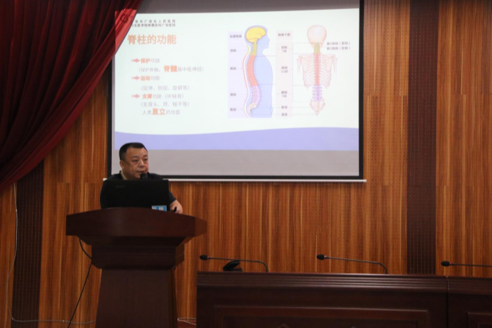 本次活动第一阶段,杨新华院长聚焦现代职场职工最关心、最突出的健康问题开展主题讲授,详细地讲解了长期伏案工作、不良坐姿对颈椎健康产生的影响和危害,针对如何判断是否患上颈椎病作出相应科普。随后,杨新华院长还现场教学示范了肩胛骨训练操等拉伸运动,为职工提供了科学、专业的防护指导。