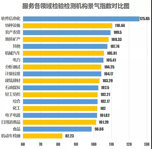 与之相反的是机动车检验检测机构以及食品检验检测机构,虽然国内经济也在逐步走强,但这些机构依然保持着较高的竞争压力,报告价格也没有明显提高,这些领域的检验检测指数本季度继续表现低迷,机动车领域检验检测景气指数仅为。